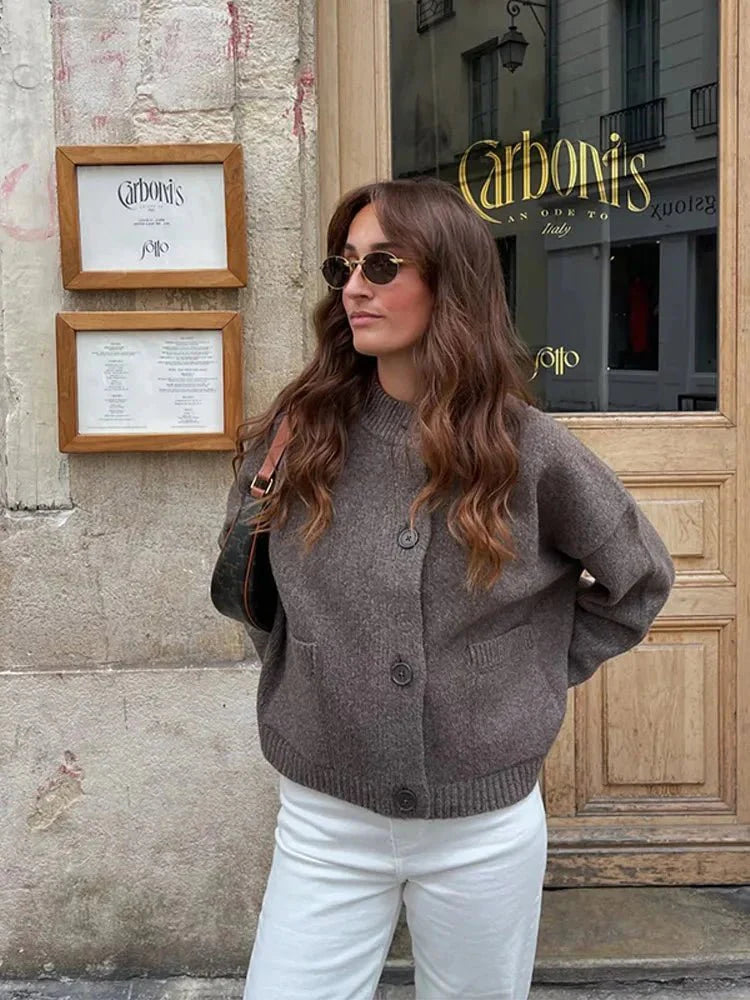 Entdecke die perfekte Kombination aus Stil und Komfort mit unserer Thea Strickjacke. Dieser modische Damen-Cardigan mit langen Ärmeln überzeugt durch ein einreihiges Design und praktische Taschen. Ein Must-have für Deine Herbstgarderobe, ideal für trendbewusste Frauen, die auf hochwertige Strickmode, bequeme Cardigans und angesagte Herbstkleidung setzen.