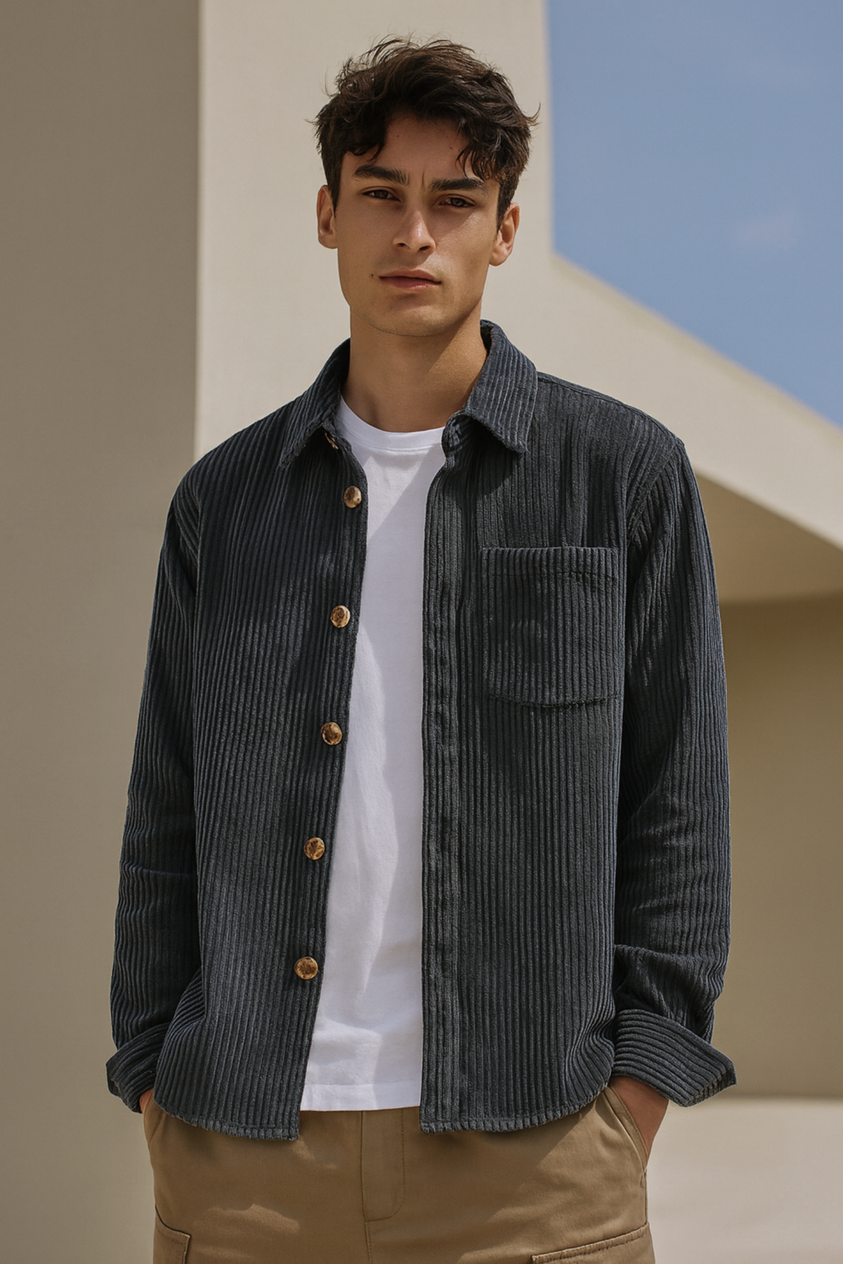 Das Raphael Hemd bringt Retro-Chic und moderne Lässigkeit zusammen. Mit seiner feinen Cordstruktur und weichem Baumwollstoff bietet es Komfort und Stil zugleich – perfekt als Hemd oder leichte Overshirt-Jacke.