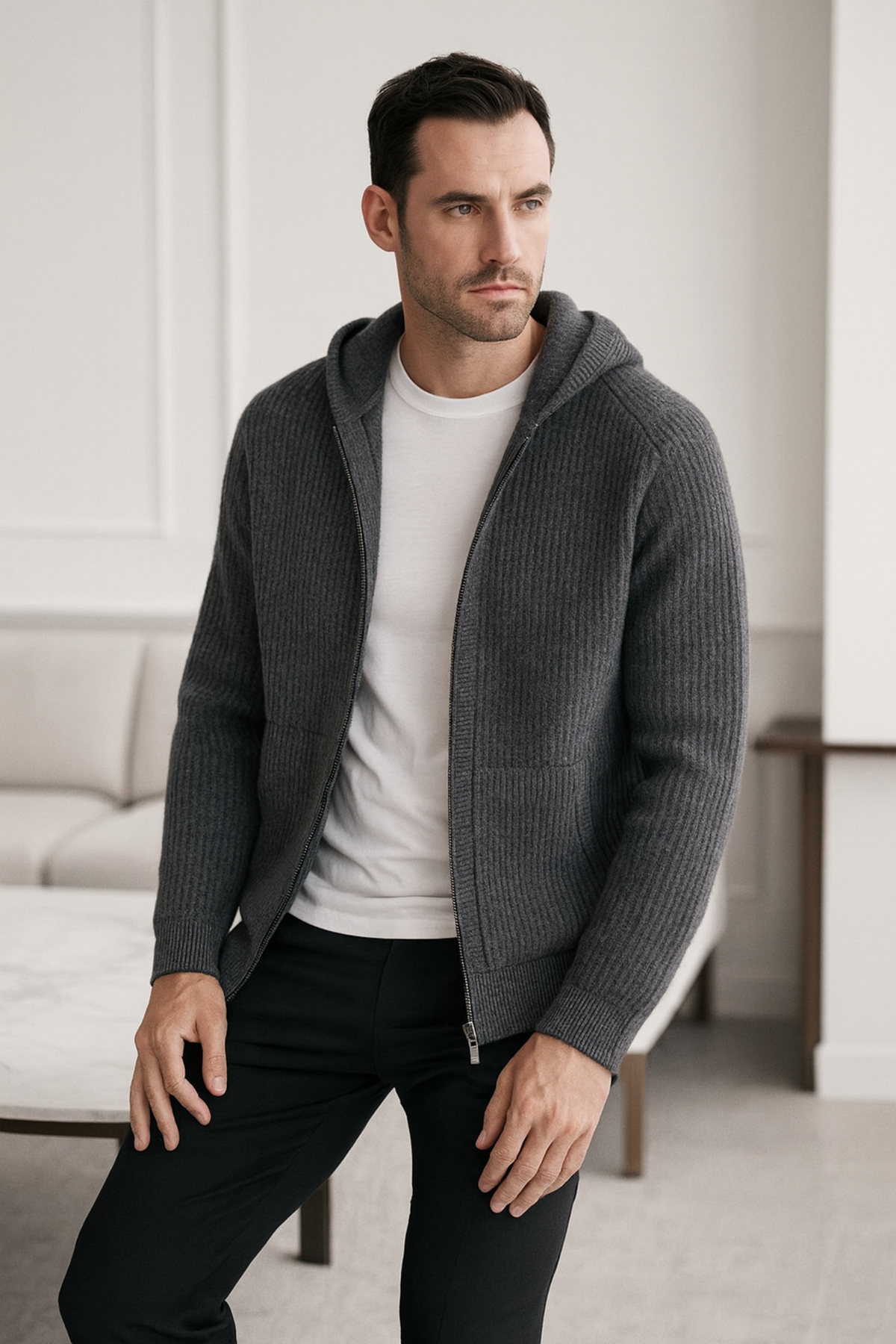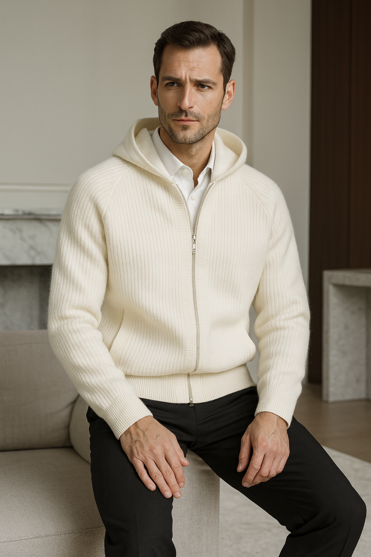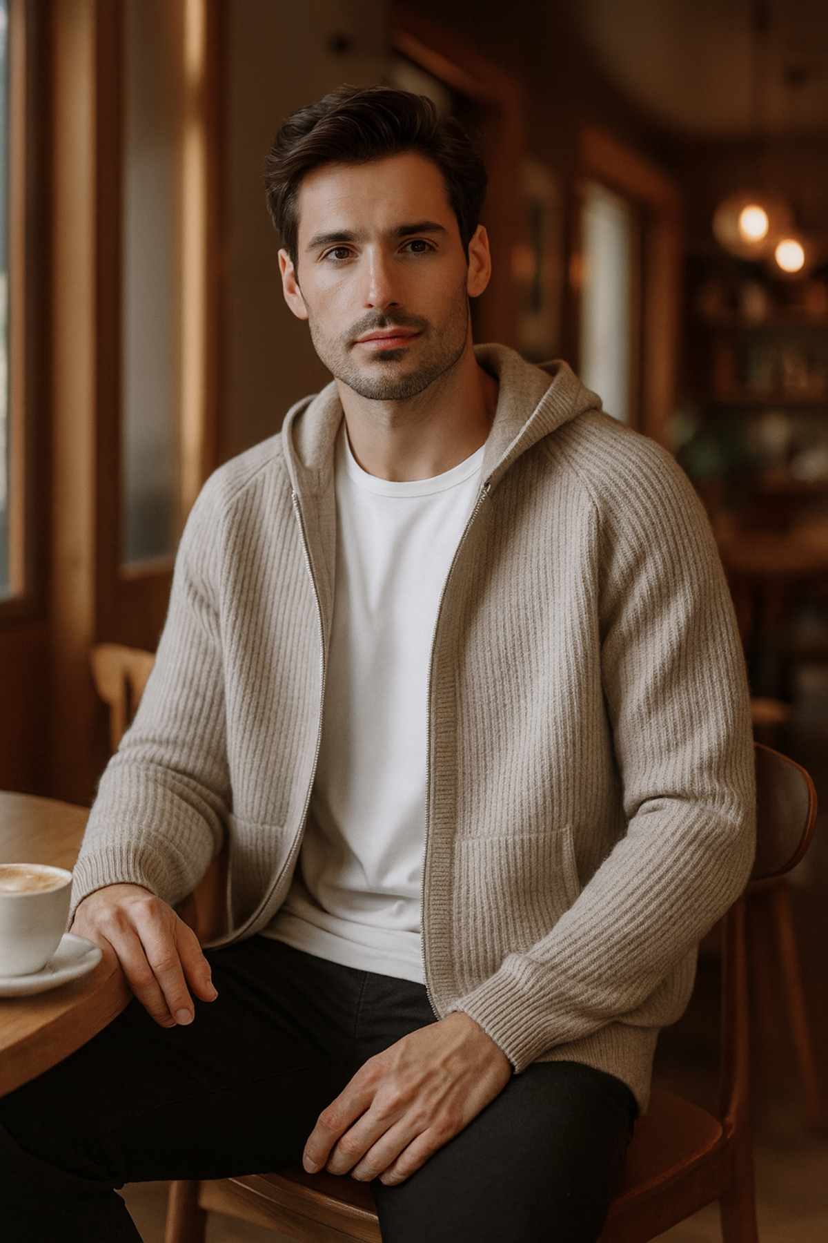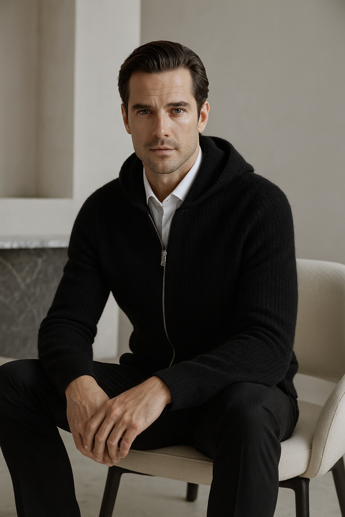 Der Sorrano Zip Hoodie vereint Komfort und Eleganz. Gefertigt aus ultrafeinem Kaschmir, bietet er eine unvergleichlich weiche Haptik und leichte Wärme – ein Premium-Piece, das deine Loungewear auf das nächste Level hebt.