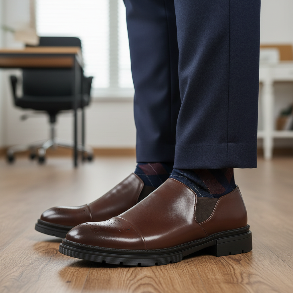 Gefertigt aus echtem Leder und veredelt mit klassischem Brogue-Muster, bieten diese Schuhe eine dezente Note von Luxus in einem eleganten Design. Elastische Seiteneinsätze und eine gepolsterte Innensohle sorgen für ganztägigen Tragekomfort.